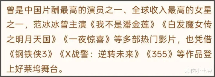 范冰冰也是这其中一员,拿着高片酬享受着观众的支持,连这次采访,外媒介绍范冰冰,也说她曾是中国片酬最高、全球收入最高的明星之一。但一朝落寞就在外网贬低中国观众审美,拍了那么久的中国电影,赚了那么多钱,现在回过头点评起中国电影?